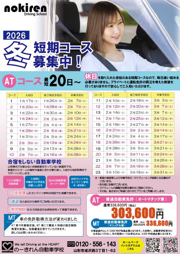 また、自宅でオンライン学科を受講することができ、学校に来ていただくのは1日2時間の技能教習のみになりました!